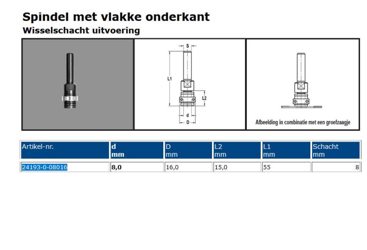 A-Quality JSO-TR Spindle with flat bottom. You can use this spindle in combination with the groove saws for milling, for example, a Deventer draft profile.