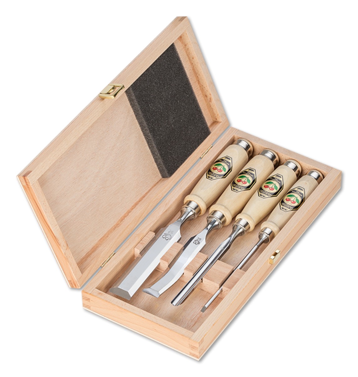 1 x 26mm steekbeitel - 1 x 20mm S-vorm beitel - 1 x 12mm gutsbeitel - 1 x 4mm steekbeitel