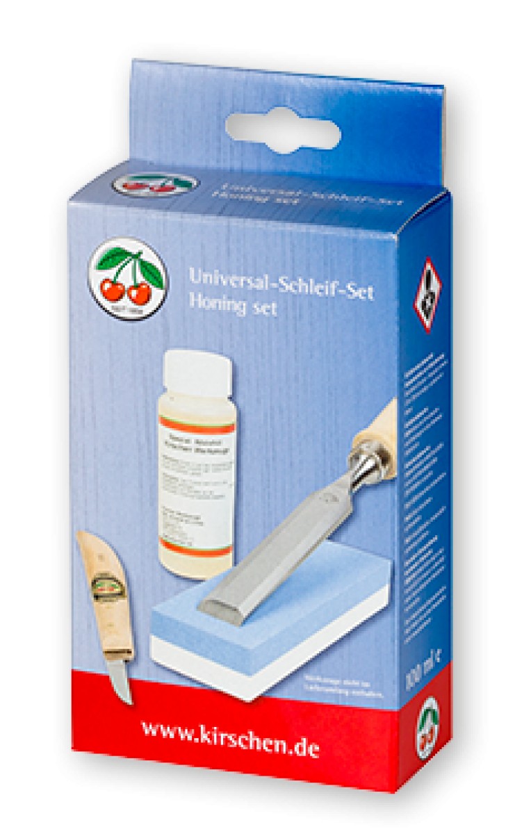 This sharpening set consists of a 100 ml plastic bottle with special oil that is matched to the whetstone to achieve the best possible results. The enclosed whetstone consists of 2 different grains (blue = coarse / white = fine).