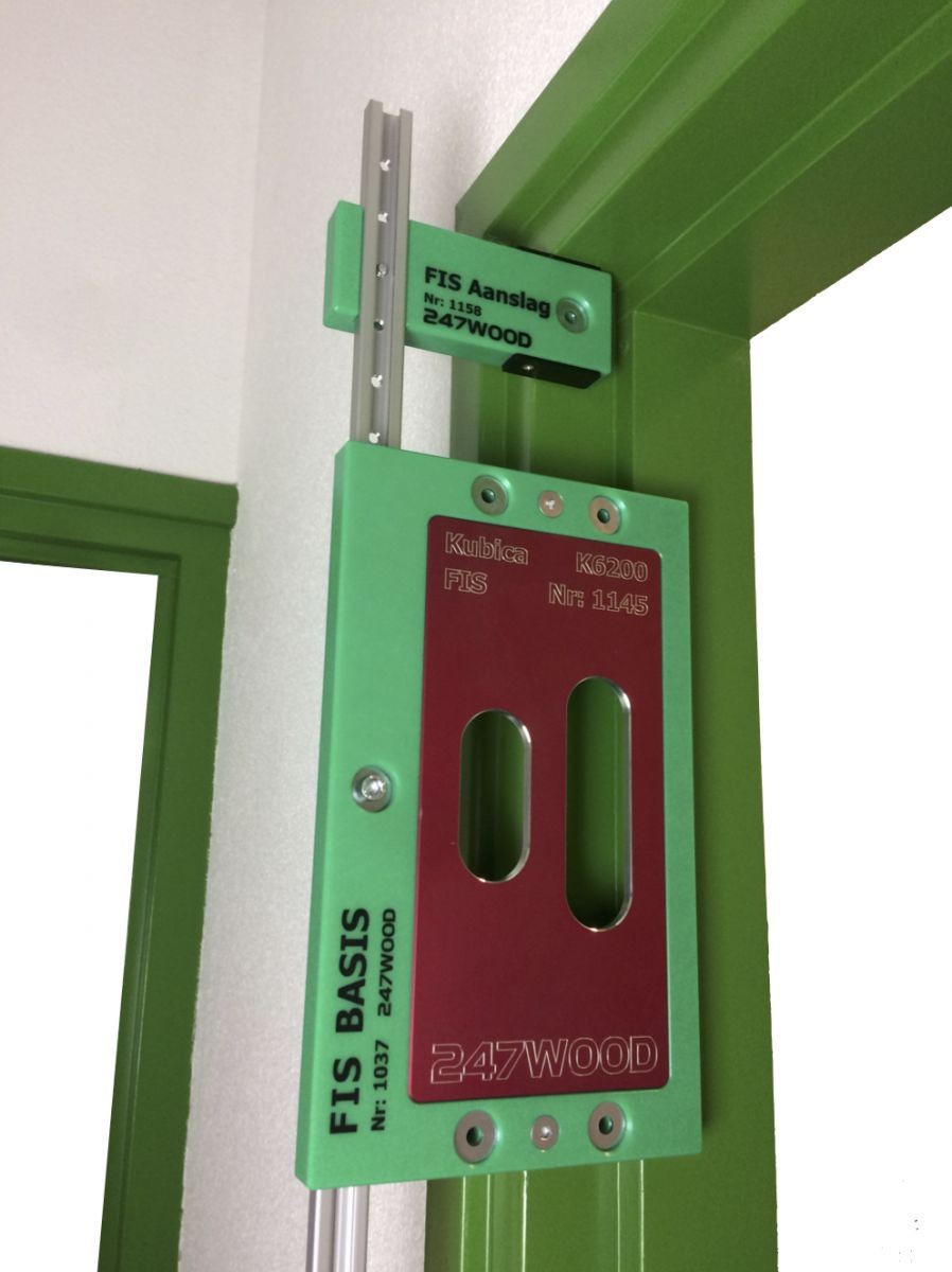 With this separate milling template FIS Basis (Milling template Invisible Hinge) you lay the foundation for milling out invisible hinges / concealed hinges, or prepare the Milling template set FIS Basis. Due to the cams on the back, the hinge is always positioned correctly from both the door side and the frame side. You can also make your own choice from our diverse range of aluminum hinge insert plates that you click into the FIS Basis milling template, making it easy to mill the stepped hinge and it works with any type of router. This milling template FIS Basis can be used with a 24 millimeter copy ring and an 18 millimeter cutter, but note that the cutter must have a total length of at least 90 mm.