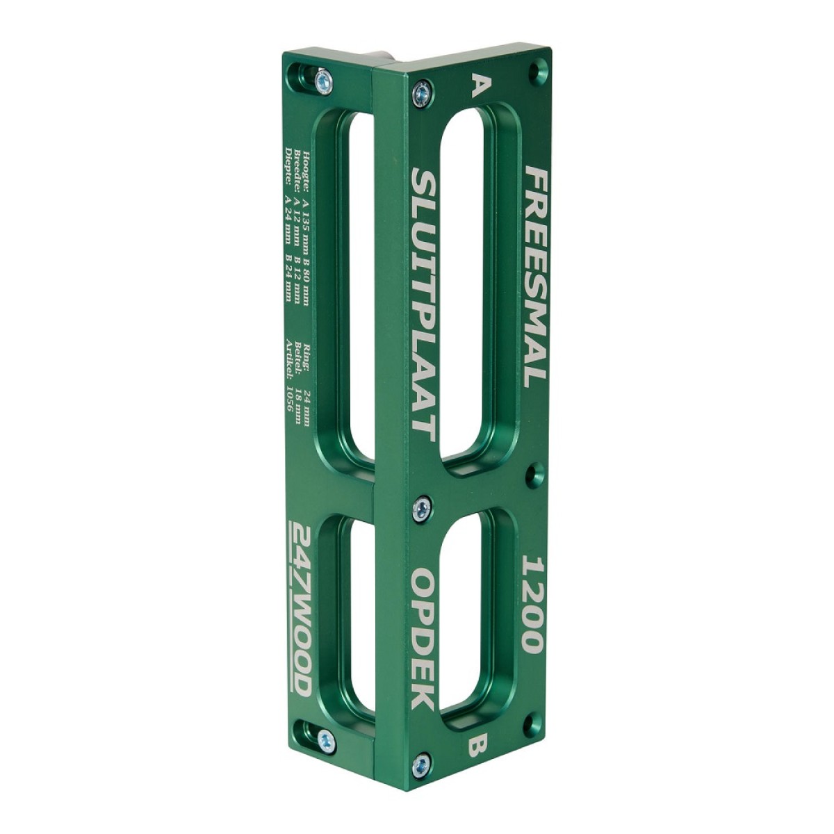 With this router template you can easily mill the (freely occupied ; loop) plates of the NEMEF 1200 series in a frame.;Due to the angular shape of the milling template, it is possible to mill the locking plates in a fixture, whereby the router can remain at the same depth.;The mold is fully CNC machined and made of a very high quality aluminum alloy.;For correct use of the milling template, equip the router with a 24 millimeter guide bush and an 18 millimeter router bit.;The router template is routed for both the locking plates of left-hand and right-hand doors.