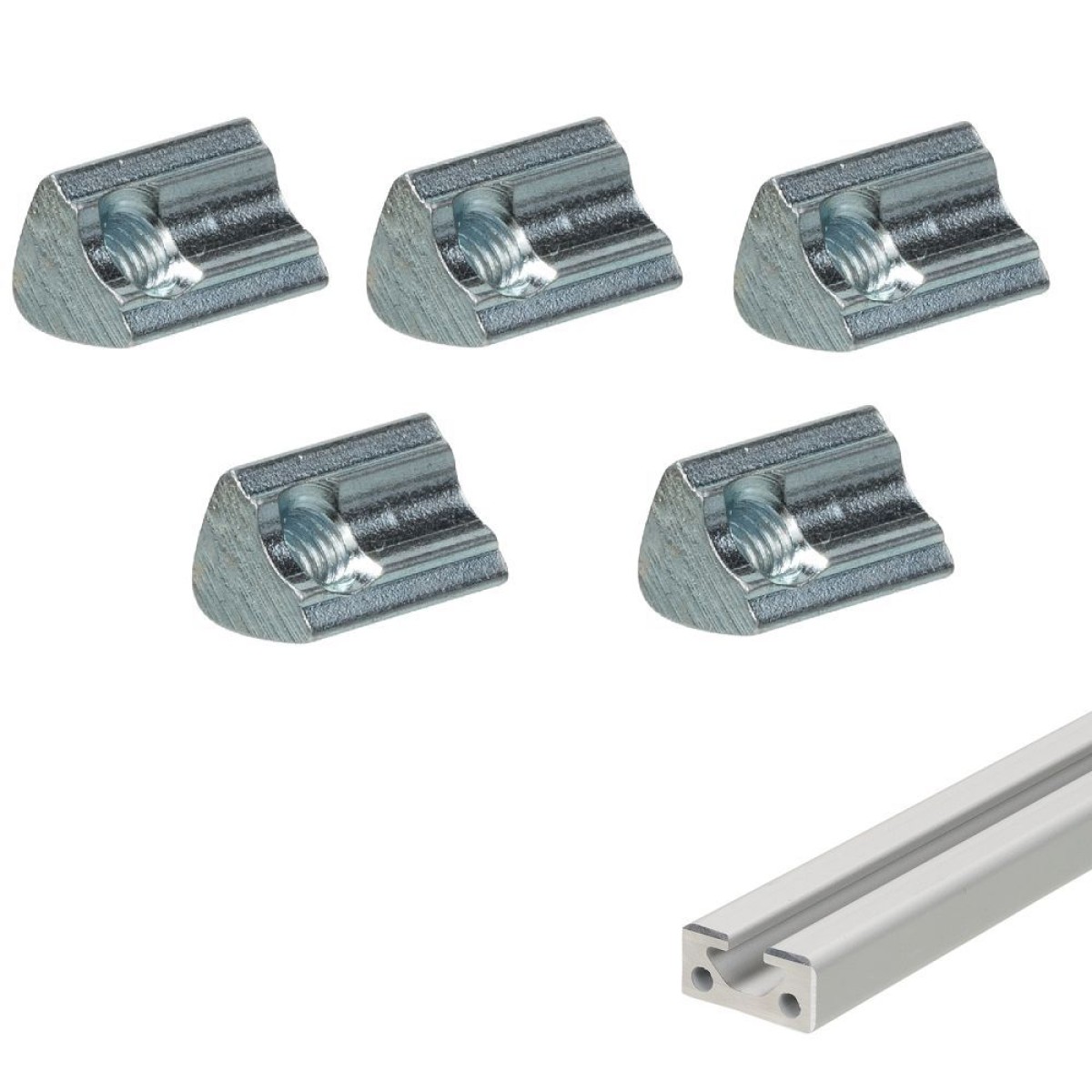 - Slider nut M5 with spring, this prevents the slide nut from falling out of the rail.