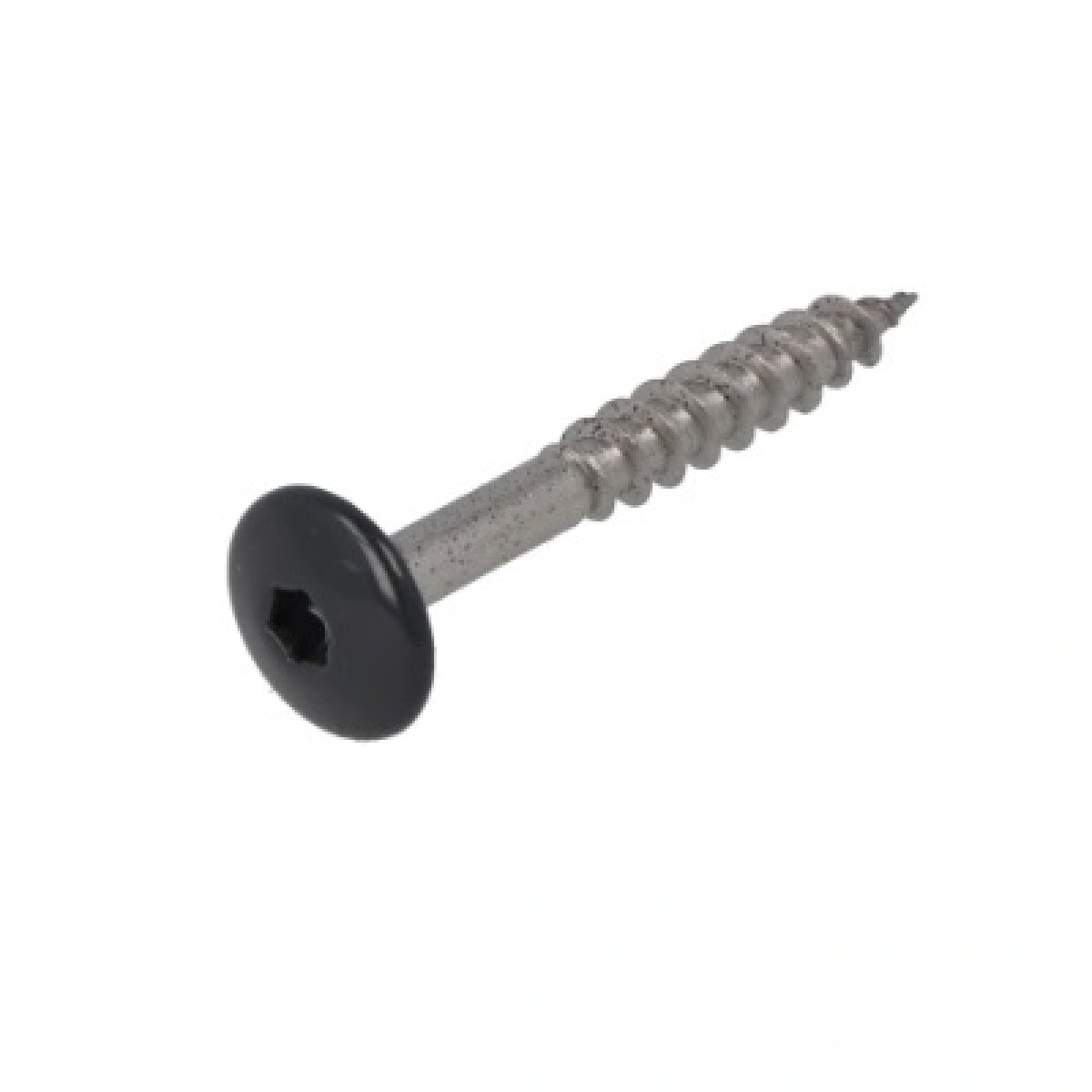 Kleurkopschroeven zijn speciale gevel montageschroeven voor het bevestigen van Trespa of HPL platen. Kleurkopschroeven zijn leverbaar in verschillende RAL-kleuren. Door de grote kop hebben kleurkopschroeven een groot klembereik. De schroeven zijn gemaakt van RVS A2 en hebben een TX-20 aandrijving. Montagevoorschrift; 8,0 mm voorboren en gebruik altijd RVS-bits om contact-corrosie in de schroefkop te voorkomen.
