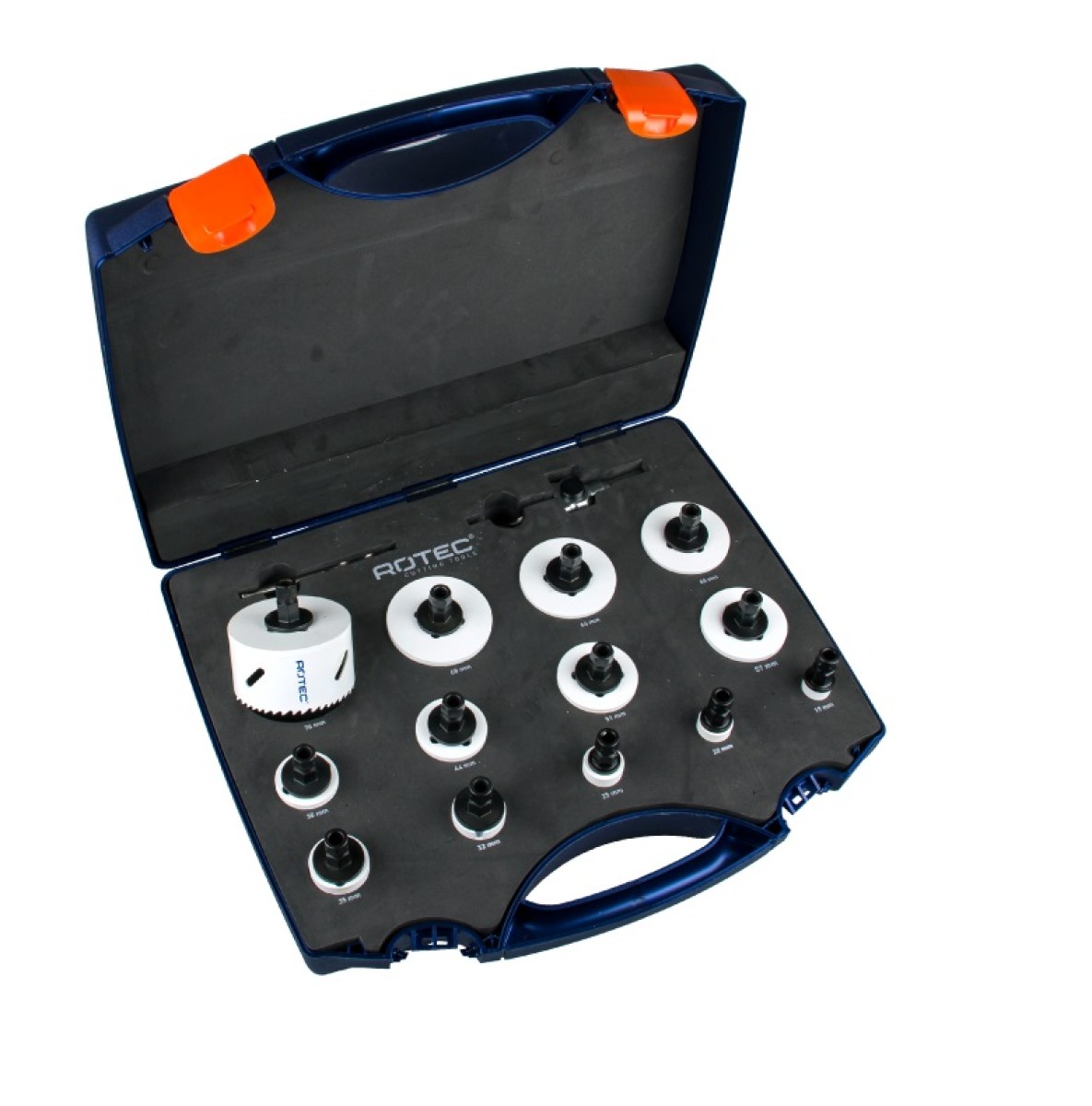 Deze 16-delige HSS-BiMCo Gatzagenset is toepasbaar voor algemeen gebruik, en door de Quik-change houder super snel te wisselen.
